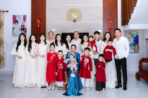 Những ngày giáp Tết, căn nhà nhỏ ở Nghệ An của bà Nguyễn Thị Năm (sinh năm 1966) rộn ràng tiếng cười khi 6 con gái và 1 con trai cùng về sum họp. Tính cả con dâu, con rể và các cháu, bà xúc động khi cả nhà 19 người cùng chụp ảnh đại gia đình.