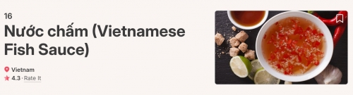 Theo bảng xếp hạng, mắm tỏi ớt đứng ở vị trí 16, trong khi mắm nêm xếp thứ 79. Danh sách được tổng hợp từ 15.925 lượt đánh giá, trong đó hơn 9.700 lượt hợp lệ, nhằm bảo đảm tính khách quan và độ tin cậy. Đây cũng là năm hiếm hoi các loại mắm Việt vươn lên thứ hạng khá cao giữa "rừng" nước sốt nổi tiếng đến từ nhiều nền ẩm thực lâu đời như Pháp, Ý, Mexico hay Nhật Bản.