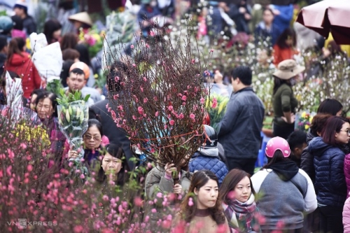 Chợ hoa Quảng Bá (Hà Nội) nhộn nhịp những ngày cận Tết Nguyên đán. Ảnh: Giang Huy |