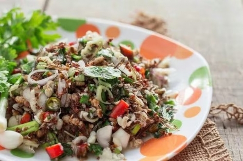 Người Thái trộn chúng cùng rau thơm, ớt, nước cốt chanh và thính gạo để tạo nên hương vị vừa cay, vừa giòn, vừa… rợn người. Một số du khách mô tả rằng cảm giác “trứng vỡ trong miệng” khiến họ phải nhắm mắt để nuốt, trong khi những người can đảm lại xem đây là “món ngon đáng giá nhất vùng Đông Bắc Thái”. Ảnh Internet |