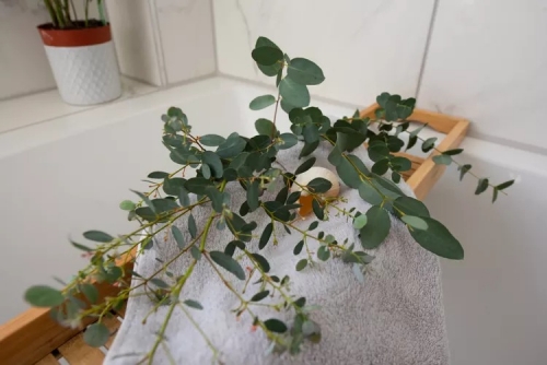 2. Hô biến phòng tắm thành spa bằng lá khuynh diệp