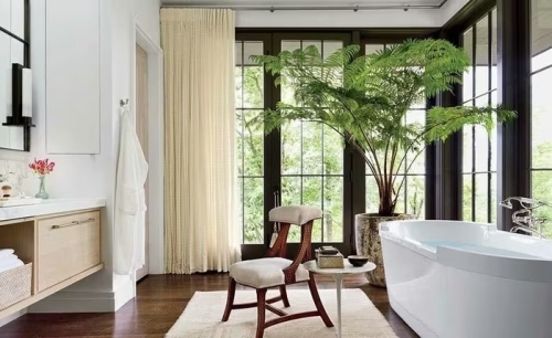 Tán lá xòe rộng, mềm mại của dương xỉ mang đến cảm giác thư giãn, gần gũi với thiên nhiên, biến phòng tắm thành nơi nghỉ ngơi đúng nghĩa. Ảnh: AD |