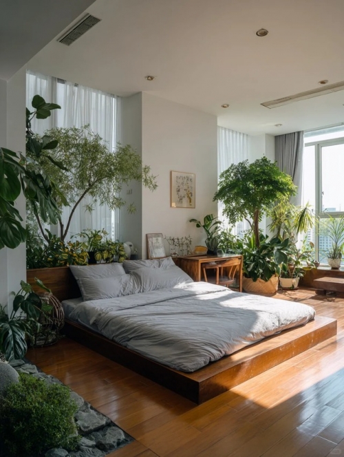 3. Cây xanh hoặc hồ cá trong phòng ngủ: Thủy khí và Âm khí quá nặng