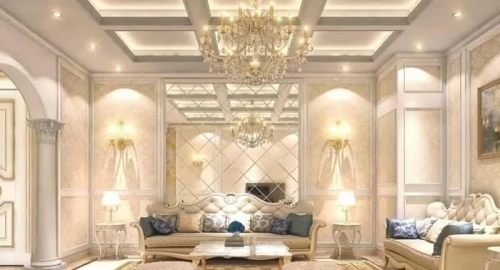 Trần thạch cao giật cấp phức tạp với nhiều tầng, nhiều hoa văn từng là “chuẩn mực” cho phòng khách sang trọng. Thế nhưng, kiểu trần này không chỉ tốn chi phí mà còn làm giảm chiều cao không gian, gây cảm giác nặng nề. Ảnh: Vĩnh Tường |