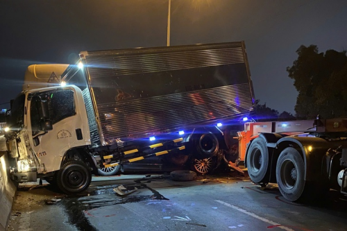 Tại hiện trường, một xe tải và xe con va vào phần rơ moóc của xe đầu kéo khiến hai xe nằm chắn ngang mặt đường. Vụ va chạm may mắn không gây thương vong, nhưng làm nhiều xe bị hư hỏng và khiến dòng xe ùn ứ kéo dài.