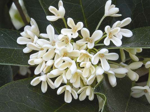 Mộc hương hay còn gọi là là mộc tê, quế hoa, hoa quế. Đây là giống cây thường xanh với lá bóng đẹp quanh năm, khá phù hợp để trồng làm nền hoặc tạo mảng xanh ổn định trong vườn. Hoa của cây mọc thành từng chùm nhỏ màu kem.