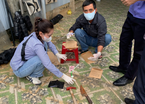 Cơ quan điều tra thu giữ hung khí Nguyễn Nam Đại Thuận dùng để gây án. |