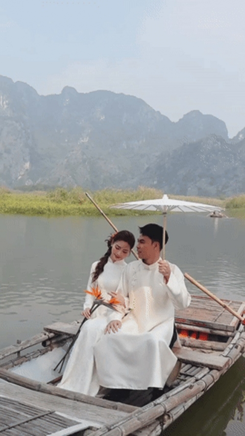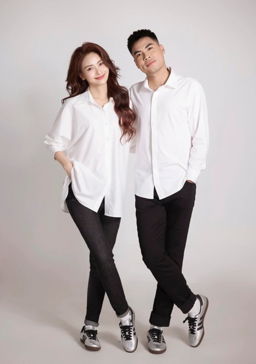 Trong bộ ảnh, MC Huyền Trang diện áo dài trắng tinh khôi, kiểu dáng truyền thống nhưng được xử lý tinh tế, tôn lên vẻ dịu dàng, nền nã. Kiểu tóc tết mềm mại, lớp trang điểm trong veo càng làm nổi bật thần thái nữ tính, đúng chuẩn "nàng thơ". Bên cạnh đó, ông xã cô - tuyển thủ Đức Huy xuất hiện trong áo dài đồng điệu, giản dị nhưng vững chãi, tạo nên tổng thể hài hòa và rất tình.