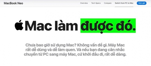 Trên trang chủ của MacBook Neo có một mục riêng mang tên "chuyển từ PC sang Mac". Ảnh: Apple. |