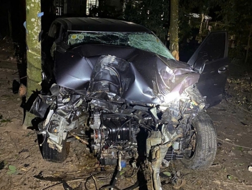 Nghe tiếng động mạnh, người dân chạy ra kiểm tra và phát hiện các nạn nhân nằm la liệt ở hiện trường. Theo ghi nhận, sau va chạm, ô tô bị biến dạng phần đầu và đuôi, nằm kẹt giữa hai cây cao su bên đường, còn xe máy của nạn nhân cũng bị tông văng vào gốc cây gần đó.
