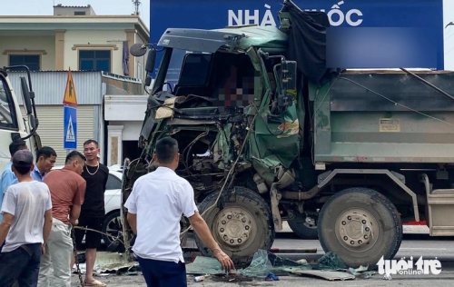 Tiếp đó xe tải đâm trúng xe tải chạy ngược chiều ở làn đường đối diện.
