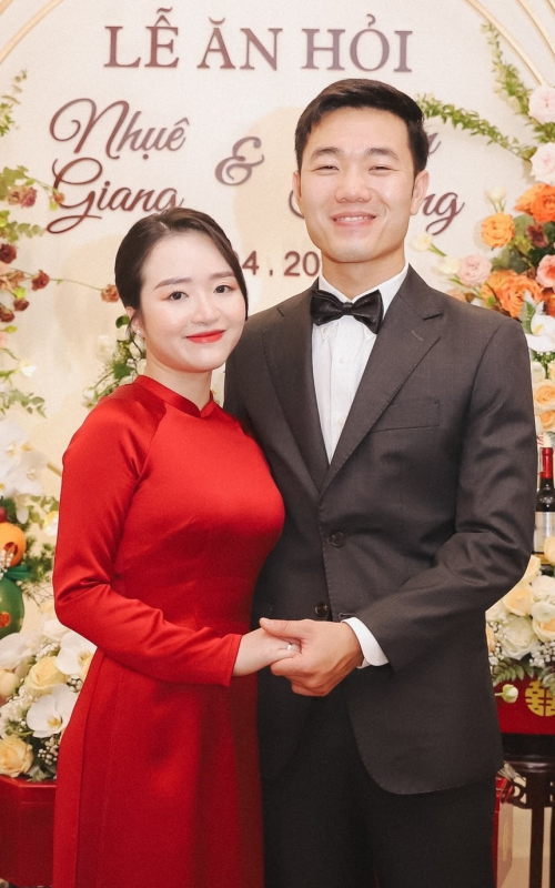 Đến tháng 4/2021, Lương Xuân Trường và Ngô Mai Nhuệ Giang tổ chức lễ ăn hỏi tại Hà Nội. Buổi lễ diễn ra trong phạm vi gia đình, không công bố rộng rãi. Cặp đôi đón con gái đầu lòng, biệt danh Daisy. Nam cầu thủ bắt đầu chia sẻ hình ảnh vui chơi cùng con nhiều hơn vào năm 2025. Ngô Mai Nhuệ Giang dần xuất hiện cùng chồng trong một số nội dung đời thường, song vẫn giữ hình ảnh kín đáo. Ảnh: IRC. |