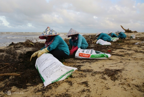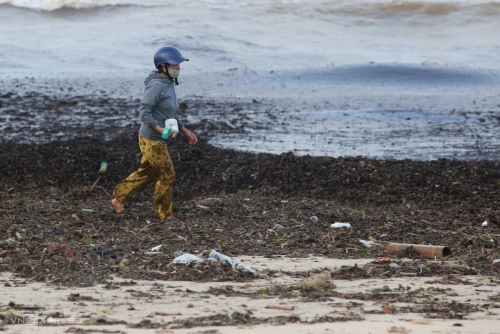 Rác tấp dày đặc thành từng lớp dọc bãi biển, gây ô nhiễm môi trường, mất mỹ quan và ảnh hưởng đến hoạt động du lịch. Thành phần rác chủ yếu là lục bình, cây cỏ, cành lá khô, xốp, chai nhựa, vỏ đồ uống… "Rác này từ nơi khác theo lũ trôi về, người dân địa phương không xả thẳng ra biển. Năm nào cũng vậy, cứ mưa bão là rác lại tấp vào bờ", bà Loan, chủ một nhà hàng ven biển Nhật Lệ, nói. |