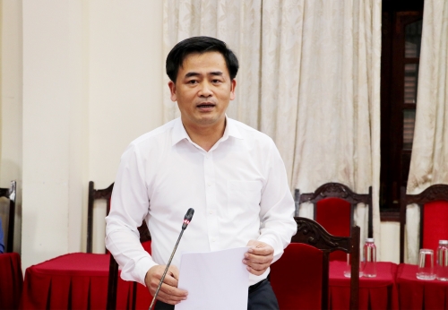 Giám đốc Sở Nội vụ Nguyễn Viết Hưng báo cáo tình hình triển khai công tác bầu cử trên địa bàn tỉnh |