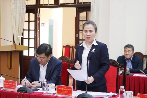 Phó Bí thư Tỉnh ủy, Chủ tịch Ủy ban MTTQ tỉnh Võ Thị Minh Sinh phát biểu |