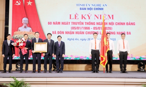 Đồng chí Bí thư Tỉnh ủy bày tỏ tin tưởng với truyền thống 60 năm cùng với sự đoàn kết, nỗ lực, quyết tâm và trách nhiệm cao, cán bộ, công chức ngành Nội chính Đảng tỉnh Nghệ An sẽ tiếp tục phát huy truyền thống, xây dựng hình ảnh người cán bộ “bản lĩnh, tinh thông, sâu sát, kịp thời”, hoàn thành xuất sắc mọi nhiệm vụ được giao.