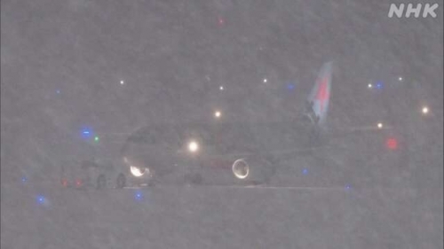 Máy bay của Jestar Japan vẫn kẹt cứng do băng tuyết tại sân bay Shin Chitose (Ảnh: NHK) |