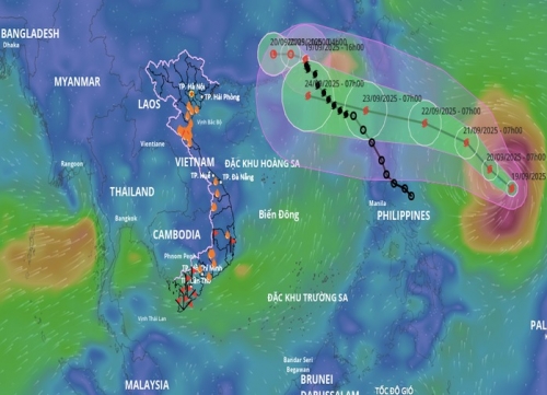 Hồi 7 giờ sáng 19-9, vị trí tâm bão Ragasa ở khoảng 15,7 độ Vĩ Bắc; 131,9 độ Kinh Đông, cách đảo Luzon, Philippines khoảng 1.000 km về phía Đông. Sức gió mạnh nhất cấp 8 (62–74 km/giờ), giật cấp 10. Bão di chuyển theo hướng Tây Bắc, tốc độ khoảng 10 km/giờ.