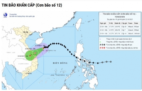 Đồng thời, trên đất liền, do ảnh hưởng của hoàn lưu bão số 12 kết hợp với không khí lạnh tăng cường mạnh, từ chiều ngày 22/10 trên đất liền ven biển các tỉnh từ Quảng Trị đến Tp.Đà Nẵng có gió mạnh dần lên cấp 6, có lúc cấp 7, giật cấp 8-9.