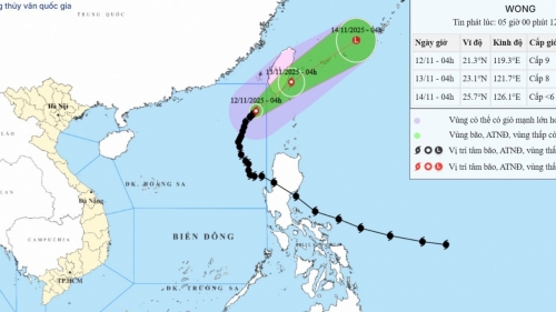 Theo Trung tâm Dự báo KTTV Quốc gia, vào hồi 4h ngày 12/11, vị trí tâm bão ở vào khoảng 21,3 độ Vĩ Bắc; 119,3 độ Kinh Đông, trên vùng biển phía Đông Bắc của khu vực Bắc Biển Đông. Sức gió mạnh nhất vùng gần tâm bão mạnh cấp 9 (75-88km/giờ), giật cấp 11. Di chuyển theo hướng Đông Bắc, tốc độ 10-15km/h.
