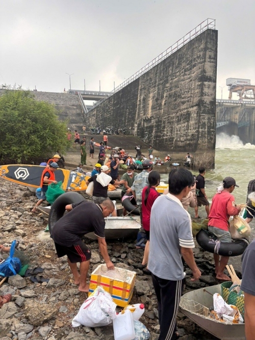 Anh Tuấn cho biết thêm lực lượng chức năng địa phương kịp thời có mặt để bảo đảm an ninh trật tự tại khu vực đập, đồng thời nhắc nhở người dân săn cá trong phạm vi an toàn.