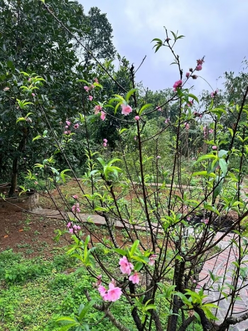 Cây đào trong vườn nhà nở hoa dịp Tết. Ảnh: FB Đinh Thị Thúy Hà |