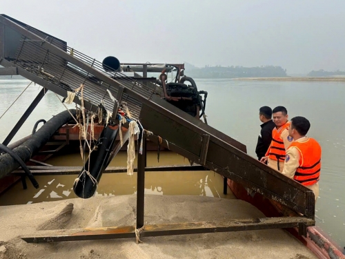 Cụ thể, khoảng 1h sáng 4/2, tổ công tác của Thủy đoàn I phối hợp Đội Cảnh sát đường thủy (Phòng CSGT Công an tỉnh Nghệ An) thực hiện nhiệm vụ tuần tra trên tuyến sông Lam, đoạn giáp ranh xã Đại Đồng và xã Thanh Chi (Nghệ An) đã phát hiện tàu hút cát gắn số đăng ký NB-6892 do Trần Văn Tr. (SN 1976) điều khiển đang thực hiện hành vi khai thác cát trái phép trên sông Lam.