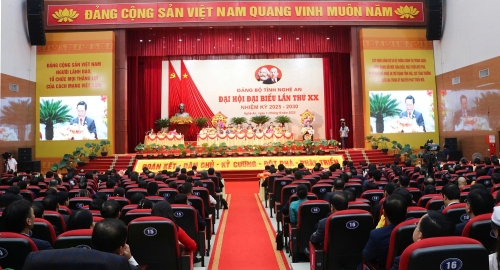 Trong niềm phấn khởi, tự hào và trách nhiệm cao, Đại hội đại biểu Đảng bộ tỉnh Nghệ An lần thứ XX, nhiệm kỳ 2025 - 2030 kêu gọi toàn thể cán bộ, đảng viên, lực lượng vũ trang, cộng đồng doanh nghiệp và Nhân dân các dân tộc tỉnh nhà tiếp tục phát huy truyền thống tốt đẹp của quê hương, đoàn kết, tận dụng thời cơ, khơi dậy tiềm năng, nỗ lực nhiều hơn, quyết tâm cao hơn, xây dựng Đảng bộ và hệ thống chính trị trong sạch, vững mạnh; phấn đấu đưa Nghệ An trở thành tỉnh khá, cực tăng trường tầm quốc gia trong kỷ nguyên phát triển mới, góp phần cùng cả nước hoàn thành mục tiêu phát triển đến năm 2030, hiện thực hóa khát vọng Việt Nam hùng cường vào năm 2045.