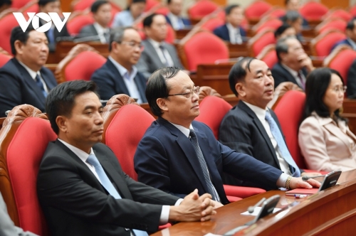 "Ban Chấp hành Trung ương Đảng, Bộ Chính trị, Ban Bí thư, các lãnh đạo chủ chốt đã đẩy mạnh toàn diện, đồng bộ sự nghiệp đổi mới, phát huy sức mạnh khối đại đoàn kết toàn dân tộc, tổ chức thực hiện hoàn thành cơ bản Nghị quyết Đại hội XIII của Đảng với nhiều thành tựu rất quan trọng, toàn diện, đột phá, đạt nhiều dấu ấn nổi bật, tạo tiền đề phát triển cho những nhiệm kỳ tiếp theo", Tổng Bí thư Tô Lâm nói.