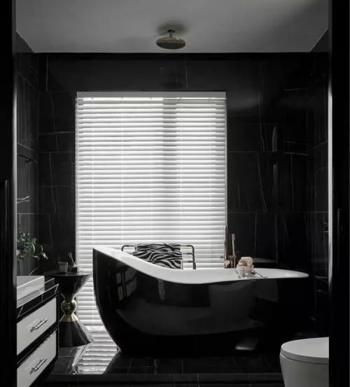 Phòng tắm với tone màu đen sang chảnh. Ảnh: Neo Classic |