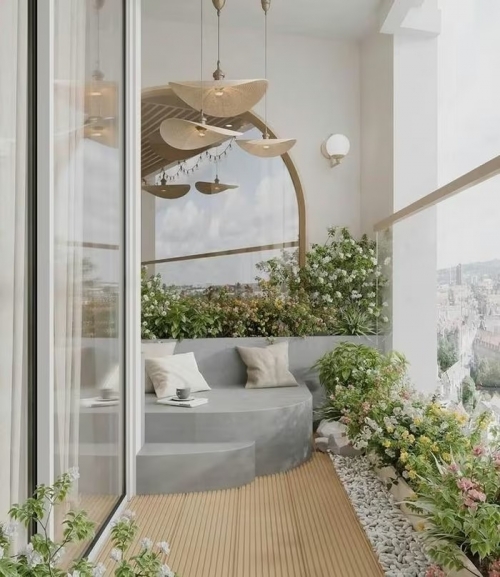 Ban công có khu vực ghế ngồi thư giãn. Ảnh: FBNV |