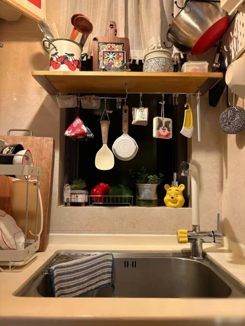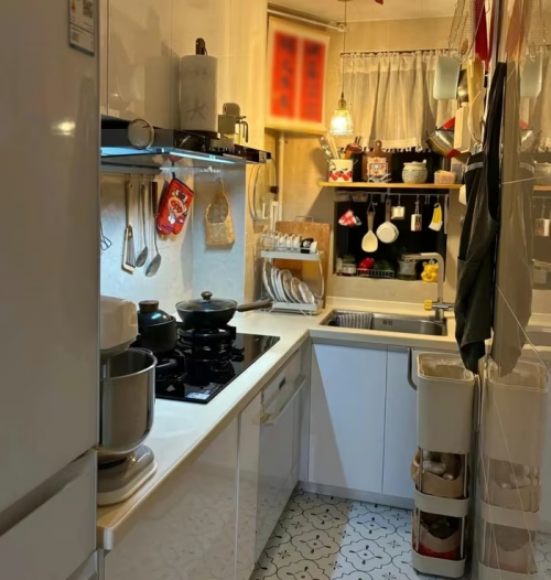 Diện tích bếp chỉ 4m2 nhưng bố trí đầy đủ công năng. Ảnh: Xiaohongshu |