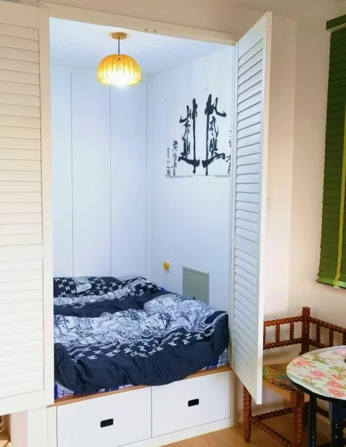 Phòng ngủ được thiết kế như một chiếc tủ, dạng kín. Ảnh: Xiaohongshu |
