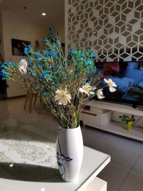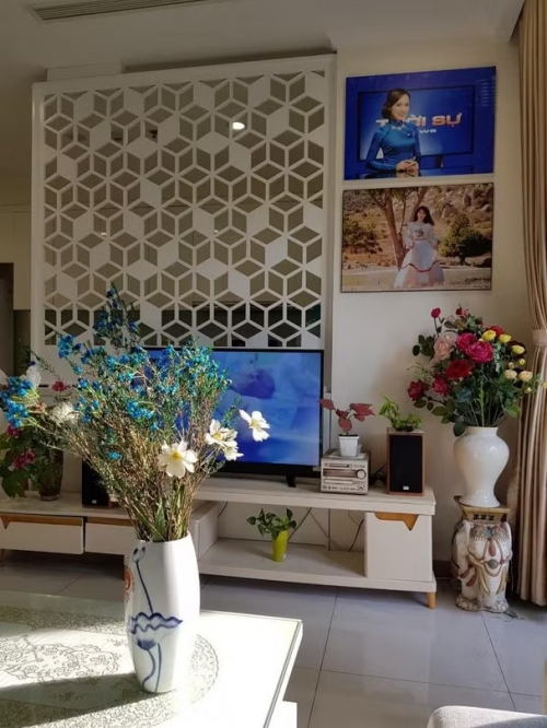 Có thể thấy, người đẹp sống trong một căn chung cư có diện tích vừa phải nhưng được bố trí rất hợp lý, gọn gàng. Điểm nhấn của căn hộ là được trang trí rất nhiều cây cảnh, hoa tươi cũng như những bức hình của chủ nhân |