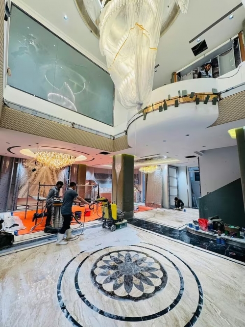 Giữa sảnh tầng 1 là chiếc đèn chùm lớn. Ảnh: Phunuso |