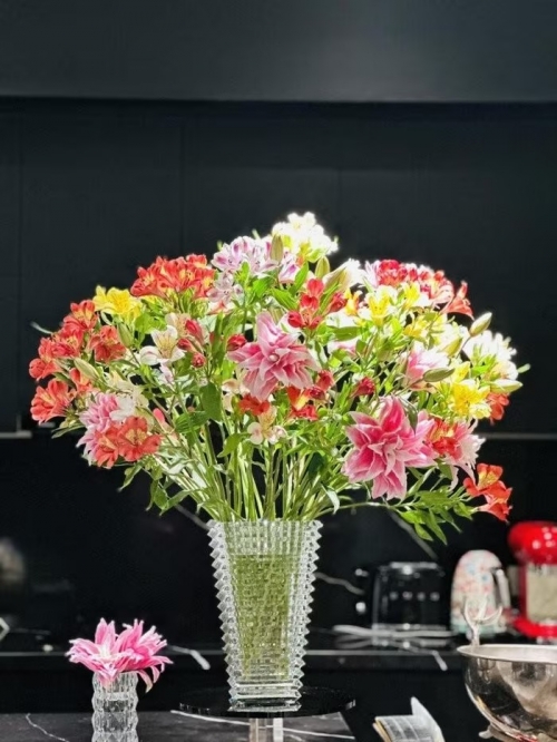 Bình hoa pha lê cao rực rỡ với đủ các loại màu như đỏ, cam, trắng, hồng...Ảnh: FB Ngoc Trinh Duong |