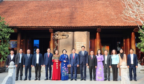 Đoàn đại biểu chụp ảnh lưu niệm tại Khu di tích đặc biệt quốc gia Kim Liên |