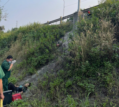 Cú va chạm khiến anh Hoàng và chị Huyền rơi xuống mái ta-luy âm. Hậu quả anh tử vong tại chỗ, chị Huyền bị thương nặng, đang được cấp cứu tại Bệnh viện Trung ương Huế.