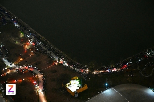 Tối 23/1, chương trình nghệ thuật đặc biệt chào mừng thành công Đại hội đại biểu toàn quốc lần thứ XIV của Đảng diễn ra tại SVĐ Quốc gia Mỹ Đình (Hà Nội). Điểm nhấn của sự kiện này là màn bắn pháo hoa với quy mô lớn chưa từng có tại Hà Nội. Theo ghi nhận của Tri Thức - Znews, từ khoảng 19h, hàng trăm người dân đã có mặt tại một số địa điểm đắc địa để thưởng thức màn trình diễn pháo hoa. Trong ảnh là khung cảnh người dân tập trung ở sân thượng chung cư trên phố Dương Đình Nghệ. Ảnh: Đinh Hà. |