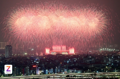 Màn pháo hoa tầm cao mãn nhãn chào mừng thành công Đại hội XIV của Đảng. Ảnh: Đinh Hà. |