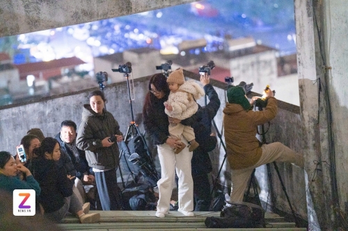 Dọc đường Mỹ Đình, dòng người kéo dài chen nhau tìm vị trí đẹp để xem pháo hoa. Ghi nhận tại toà 789, nhiều hộ gia đình lên tầng thượng của toà nhà để xem pháo hoa tầm cao trọn vẹn. Nhiều nhiếp ảnh gia cũng có mặt rất sớm để ghi lại khoảnh khắc đẹp. Các điểm cao, khu vực thoáng đãng và dọc các tuyến đường lớn cũng nhanh chóng kín chỗ. Một số gia đình chuẩn bị sẵn nước uống, đồ ăn nhẹ, sẵn sàng chờ đợi trong nhiều giờ với tâm thế vui tươi, phấn khởi. Ảnh: Trần Hiền |
