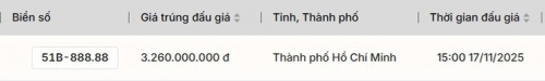 Biển số ngũ quý 8 51B-888.88 được chốt giá thấp hơn dự đoán |