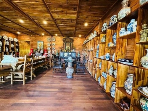 Bên trong, nghệ sĩ Hoàng Mập dành riêng một phòng trưng bày bộ sưu tập gốm sứ, tạo nên giá trị độc bản cho biệt phủ. Ảnh: Thegioidienanh |