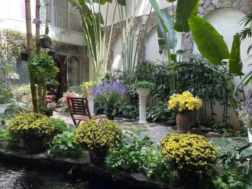 Căn nhà có diện tích hơn 300m2, sân vườn rộng rãi được bao phủ bởi nhiều cây xanh. Ảnh: FBNV |