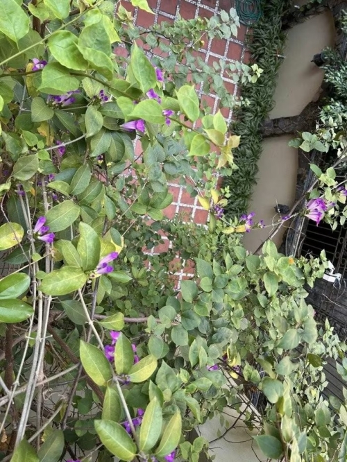 Giàn hoa lan tỏi tím ngắt bên khung cửa sổ xanh tạo khung cảnh thơ mộng. Ảnh: FBNV |