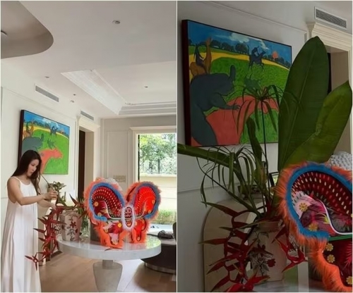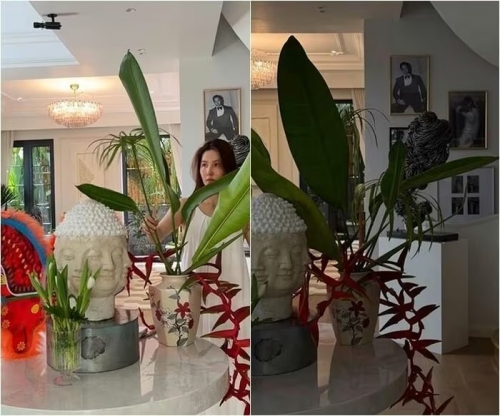 Mới đây, Diễm My 9X chia sẻ một đoạn video ghi lại khoảnh khắc cô cắt hoa từ vườn mang vào cắm, vô tình để lộ một phần không gian sống. Ảnh: chụp màn hình |
