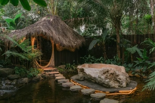 Nằm nép mình bên dòng sông, giữa những ngọn núi ở Đông Bali (Indonesia) và được bao quanh bởi thảm thực vật nhiệt đới rậm rạp, căn biệt thự hướng tới mô hình nghỉ dưỡng sinh thái tích hợp. Ảnh: Archdaily |