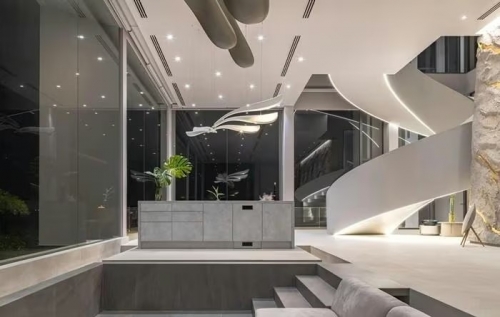 Cầu thang xoắn với các đường uốn cong mềm mại giúp không gian trở nên nhẹ nhàng. Ảnh: Witsawarut Kekina/ Shootative |