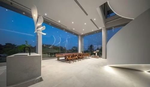 Khu vực bàn ăn mở ra tầm nhìn rộng về phía cảnh quan bên ngoài. Ảnh: Witsawarut Kekina/ Shootative |