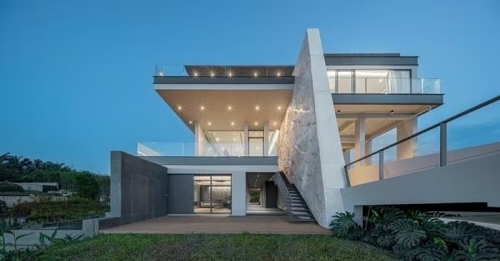 Tầng trên cùng được bao quanh bởi các sân hiên rộng. Tại đây, gia chủ có thể ngắm hoàng hôn, bầu trời đêm và dòng sông uốn lượn phía dưới. Ảnh: Witsawarut Kekina/ Shootative |